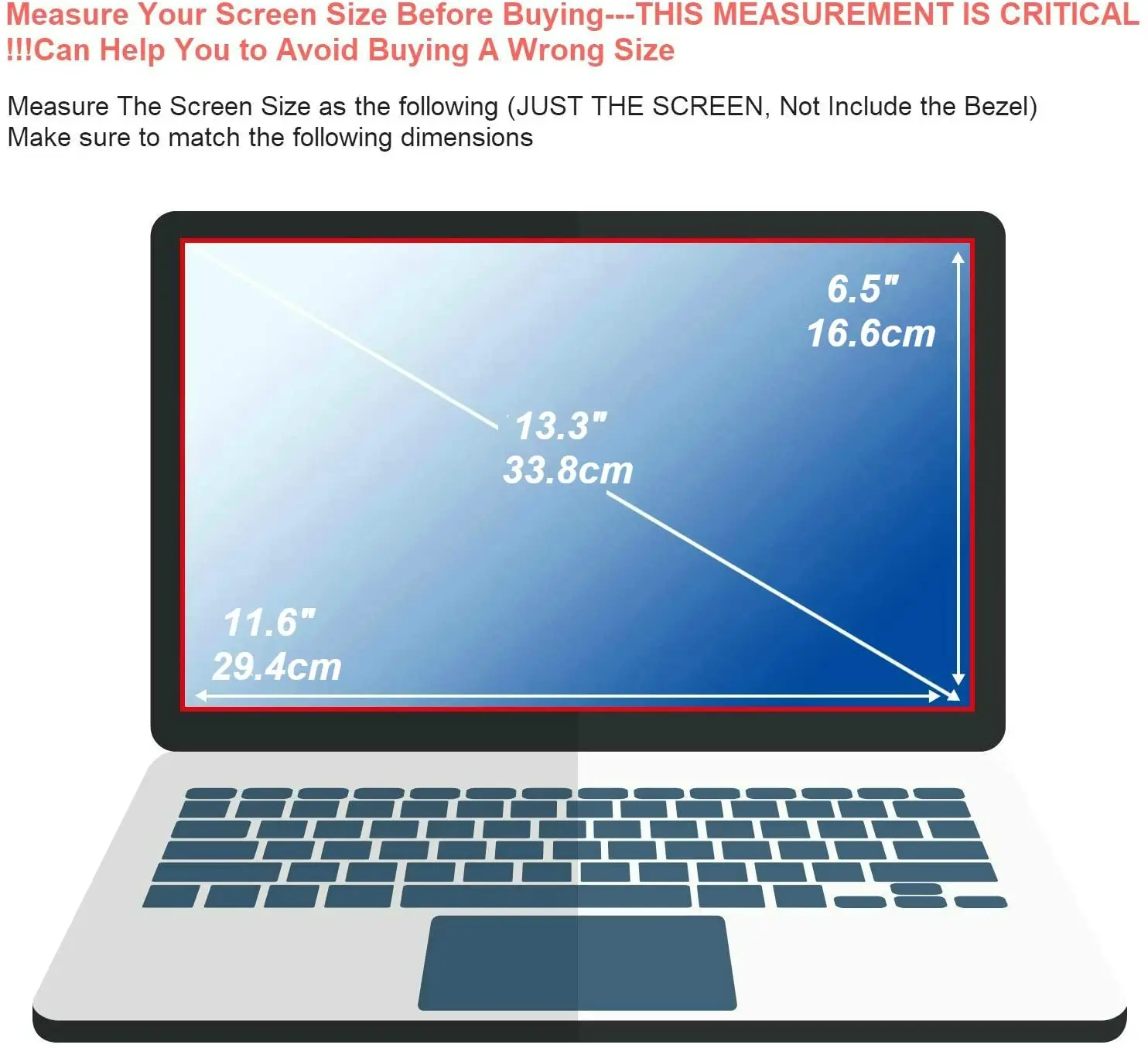 На защита экрана Размер 13,3 "(16:9) 294 мм * 166 мм, он покрывает только видимая часть экрана.