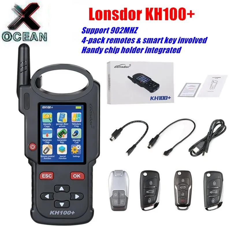 Lonsdor KH100-это универсальное ручное умное устройство, способное управлять кнопкой доступа, имитировать/генерировать чип, генерировать пульт дистанционного управления (ключ), обнаруживать удаленную частоту, обнаруживать ИММО, разблокировка для смарт-ключей Toyota и т. д.