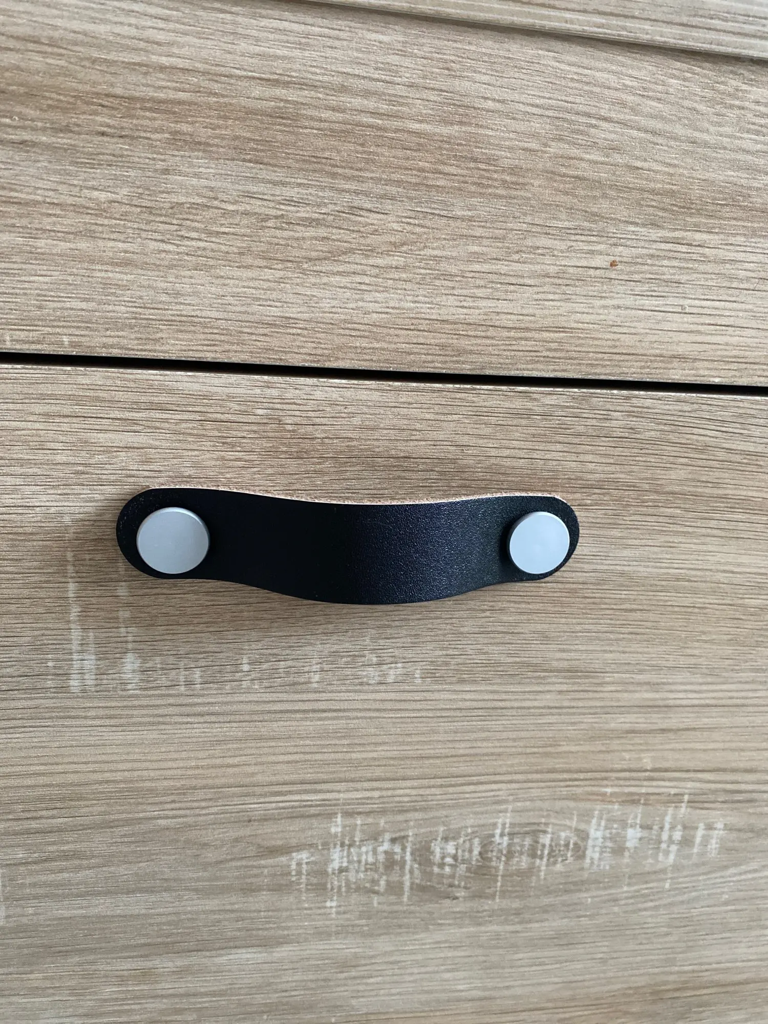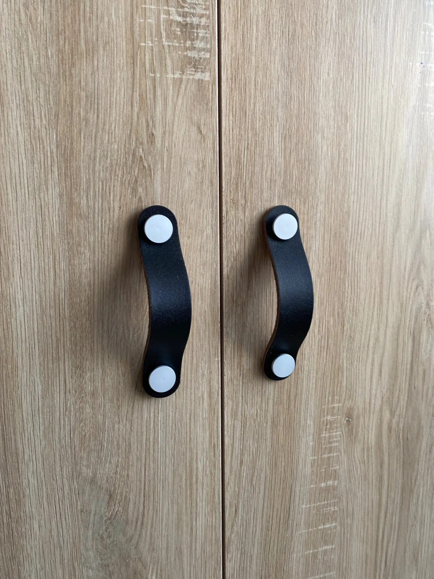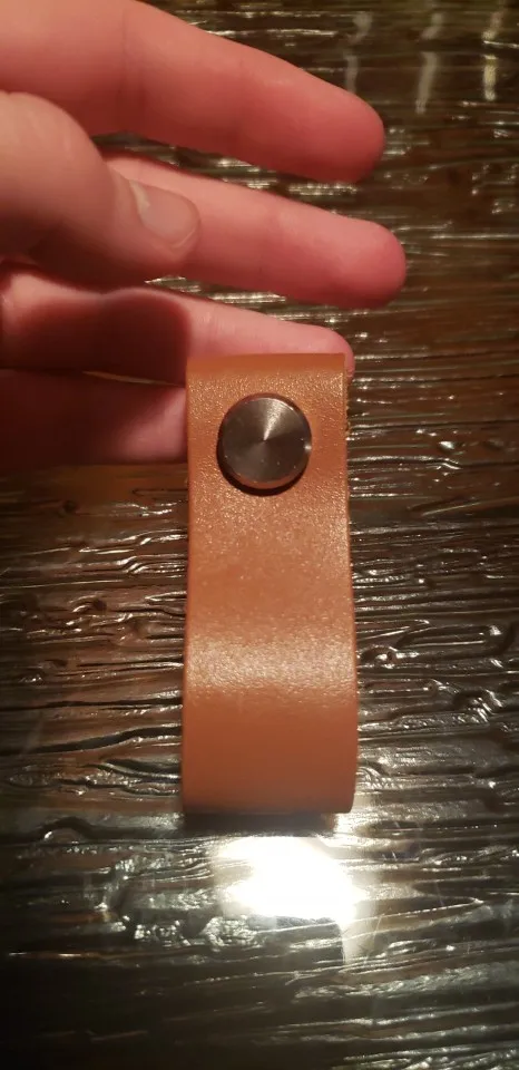 El cuero es muy fino y para un armario no sirve, parece que se vaya a partir cada vez que abro la puerta, creo que tendré que reforzarlo de algún modo porque el tirador me gusta y no sobresale que es lo que quería