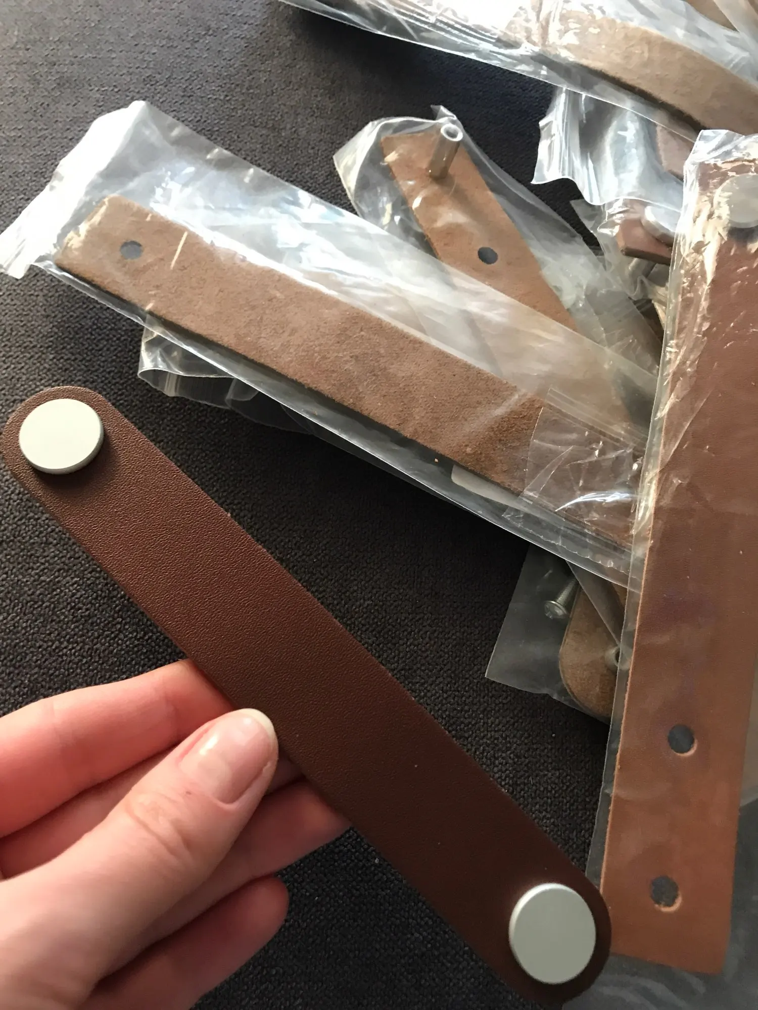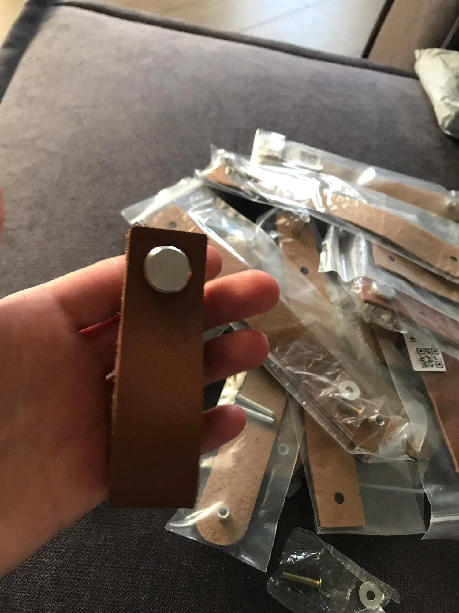 Очень хорошие ручки. Кожа хорошего качества, прочные ручки. Маленький болт m4 хорошо подходит, включая блестящие ручки золотого цвета. Счастливы! Очень быстрая доставка в holland Ю