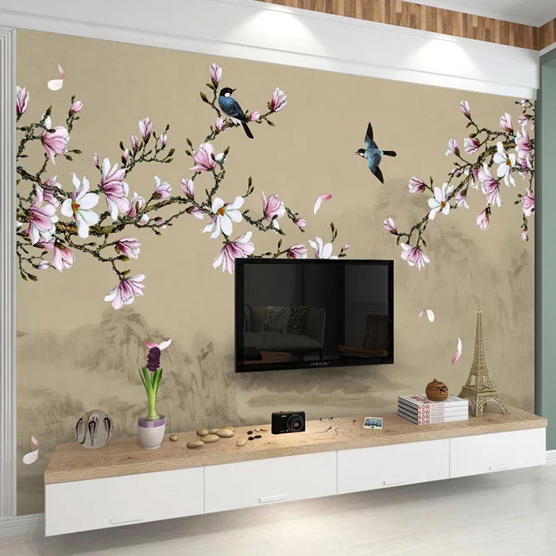 3D обои в китайском стиле, цветы и птицы, настенная живопись, гостиная, обучение, домашний декор, съемные наклейки, любой размер
