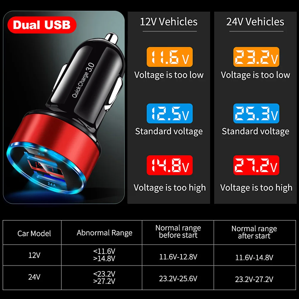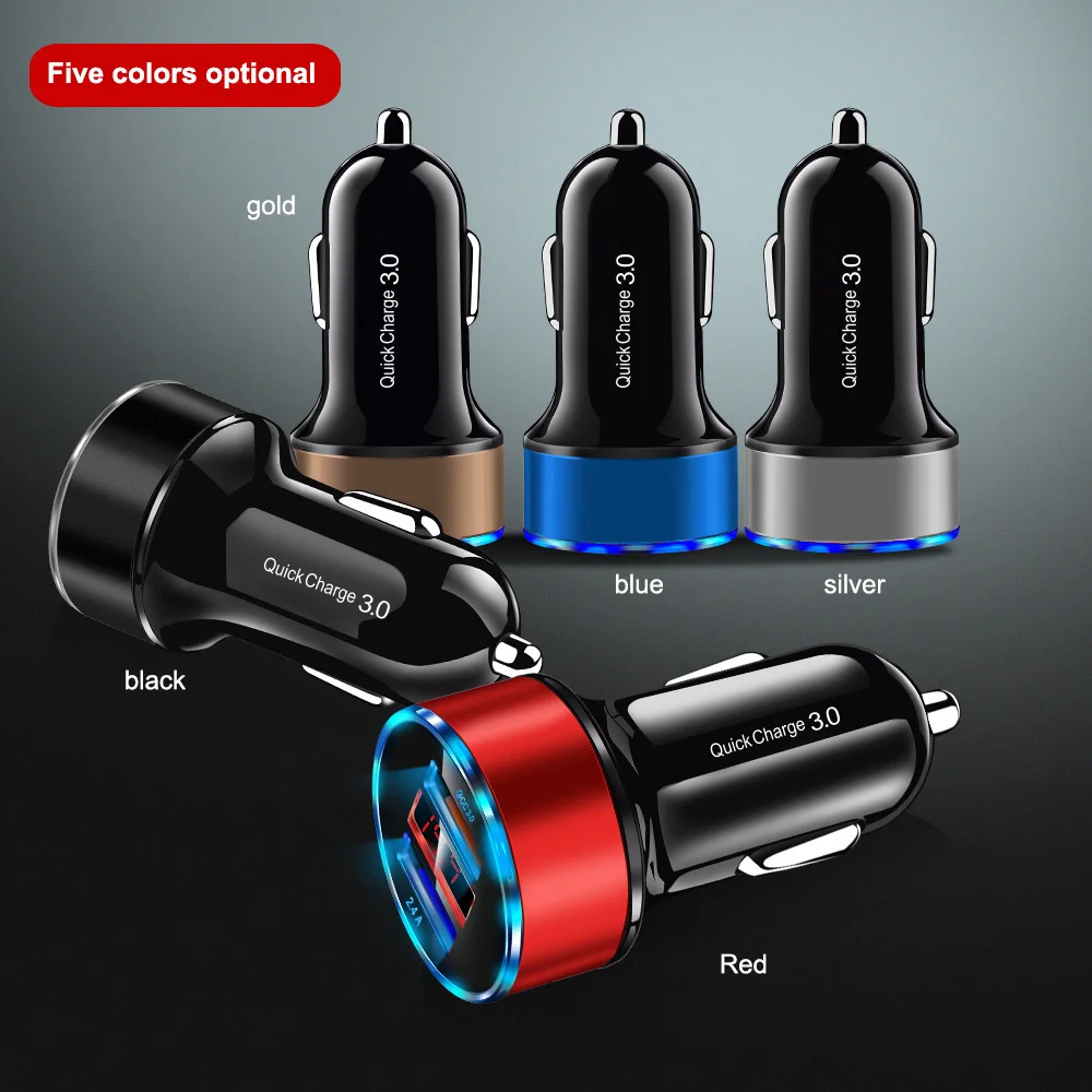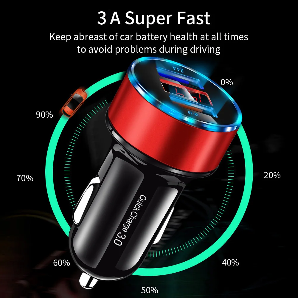 Автомобильное зарядное устройство с двойным USB QC 3,0, светодиодны...