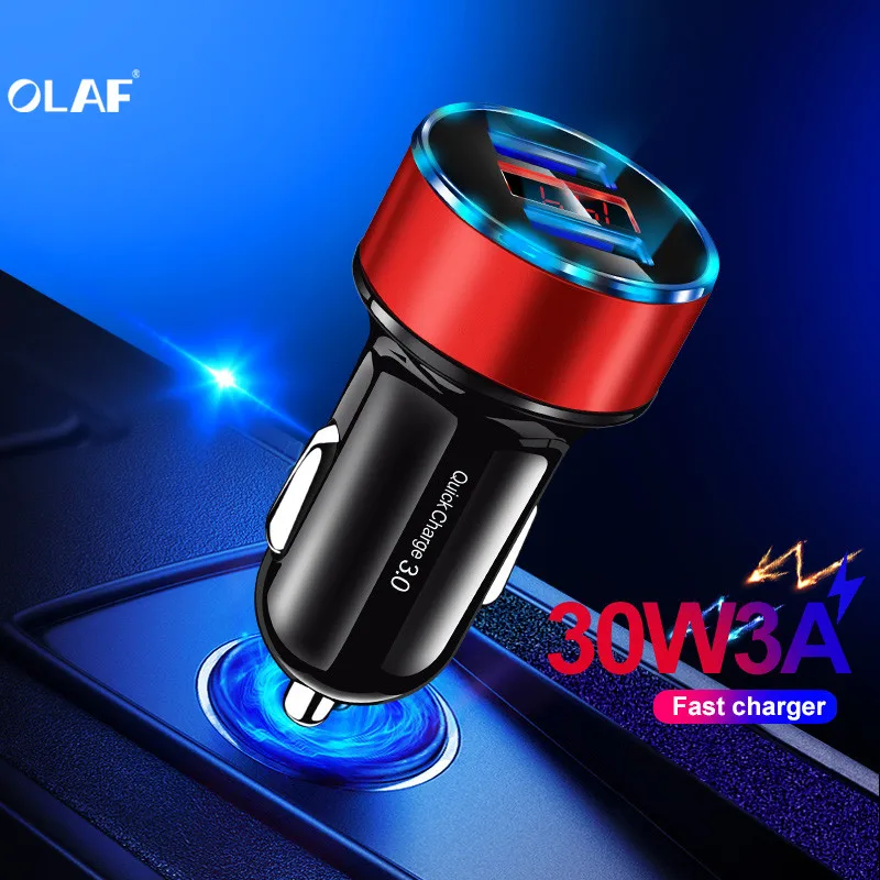 OLAF QC 3,0 Автомобильное зарядное устройство USB для Samsung a50 S9 Быстрая зарядка 3,0 30 Вт 3A быстрая зарядка автомобильное зарядное устройство 2 USB-порта зарядное устройство