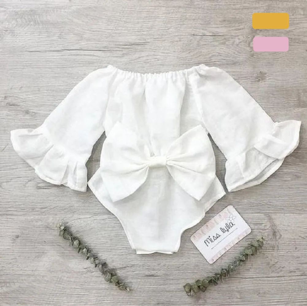 Детское летнее боди с длинным рукавом и бантом