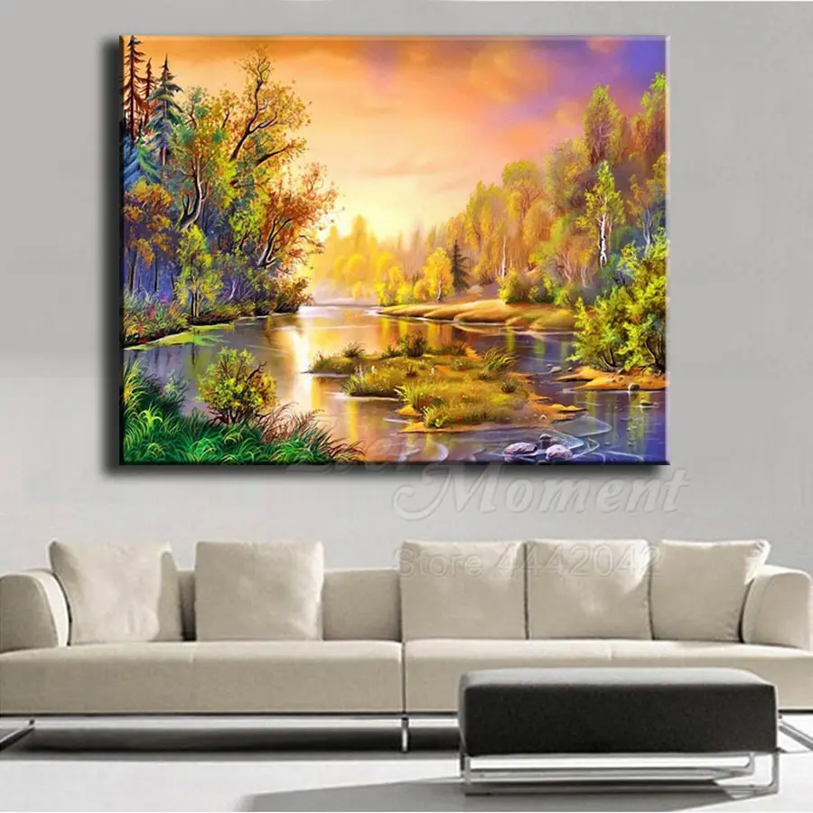 Алмазная живопись с пейзажем рекой деревьями Ever Instant, ручная работа, картина стразы, мозаика, полноразмерная Алмазная вышивка S2F2263