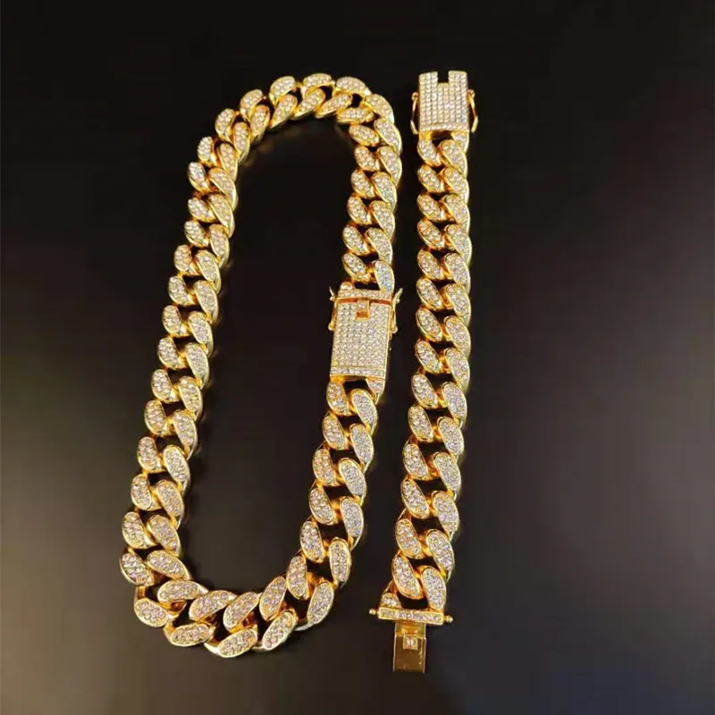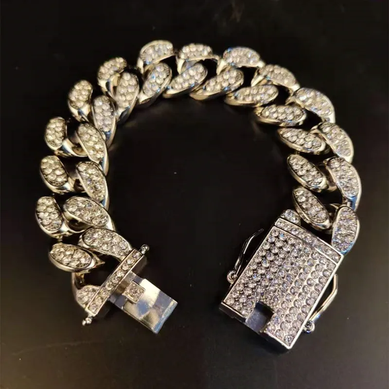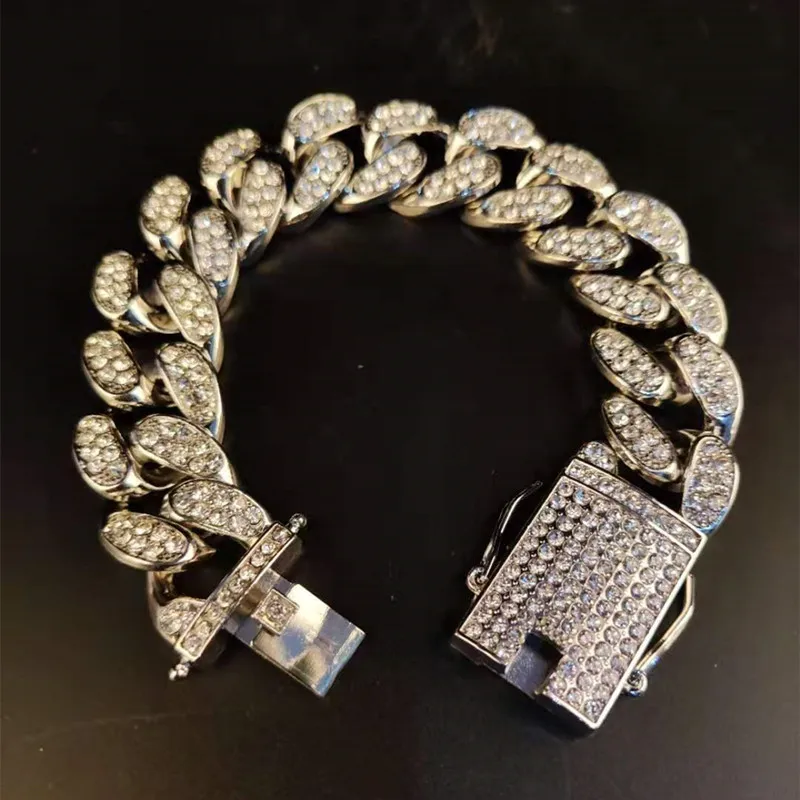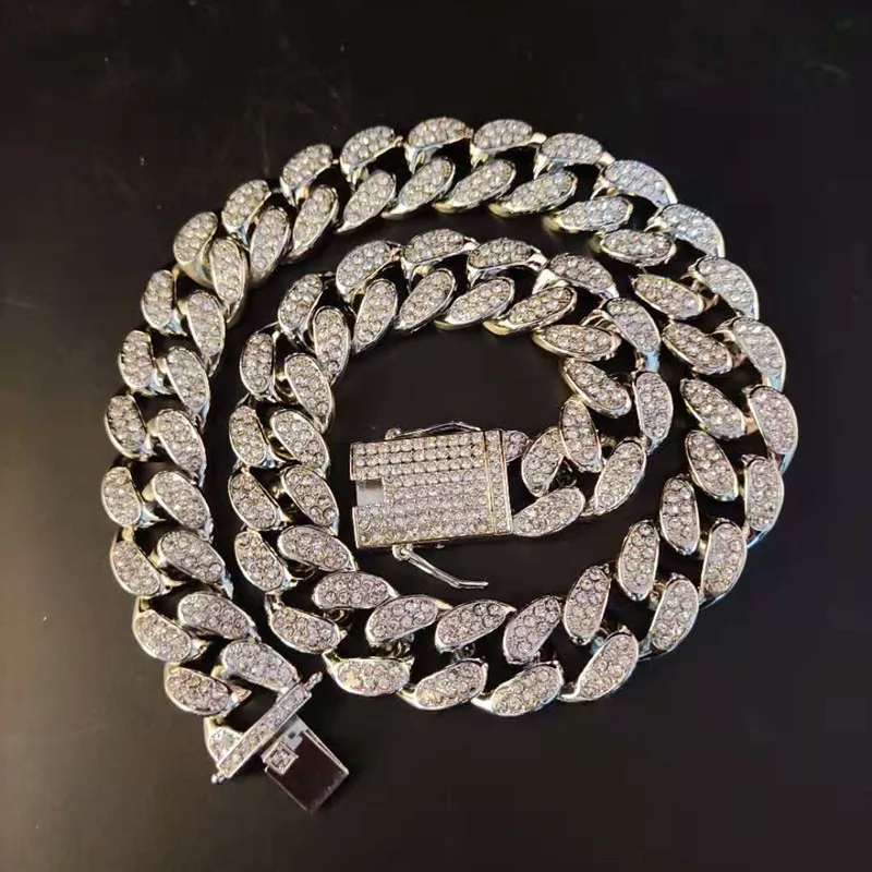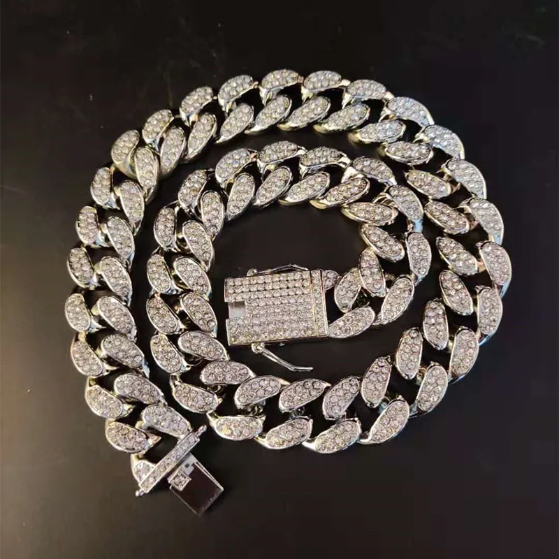 Для мужчин в стиле хип-хоп цепи из нержавеющей стали ожерелье-цепочка бриллиантовое паве Стразы 20 мм Ширина Майами Кубинский цепи ожерелье в стиле хип-хоп ювелирные изделия