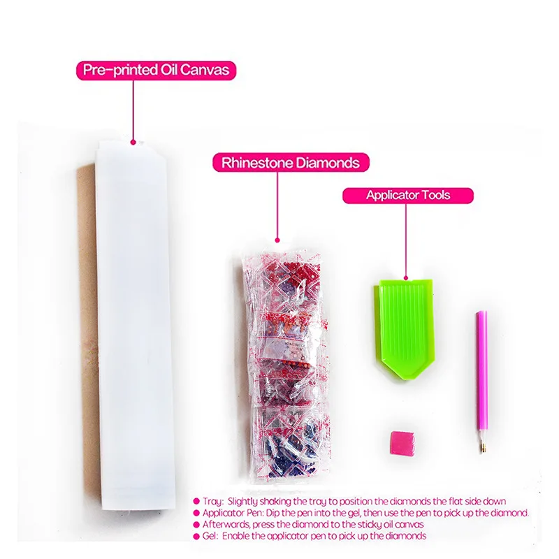 1. Откройте коробку и проверьте алмазным рисунком специальные инструменты. 2. Просмотрите цвет алмаза из смолы, расположенный в порядке кодирования. 3. Вставьте круглый конец точечного пера в точечный цемент (сильно нажмите, иначе цемент может упасть). 4. Отделите частичную пленку и приклейте алмаз к холсту в соответствии с соответствующим номером 5. Согласно соответствующему цветовому зажиму соответствуют алмазы, инкрустированные смолой. Используйте круглый конец, чтобы приклеить алмаз и слегка надавите вниз, чтобы получить дополнительный цемент. 6. В случае приклеивания на неправильное место удалите не тот алмаз 7. Предлагается один тип алмаза из смолы, один набор выполнен быстрее. 8. Для того, чтобы создать идеальную алмазную картину, рисунки, собранные в одном месте, каждый ряд символов не обязательно оставаться застрявшими алмазами. 9. Чтобы вырезать хорошую фигуру на рисунках, держите отсортированный массив, смонтированный на плоскость материала выше. Шлица нужна плоская против аккуратной, не имеют трещин. 10. Чтобы завершить хороший Алмазный рисунок, положите его в свой выбор подходящей рамки (продукт не предоставляет рамки).