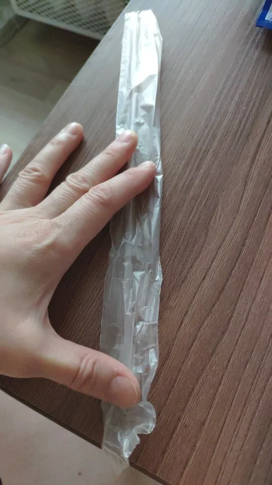 Трубка довольно жёсткая, не особо хорошо гнется (будет залом). Конец немного закруглен. Длина самой трубки 23см. Длина вместе с насадкой 26см. Каждая трубка запаяна в отдельный пакет. Доставка до Эстонии занимает полтора месяца.