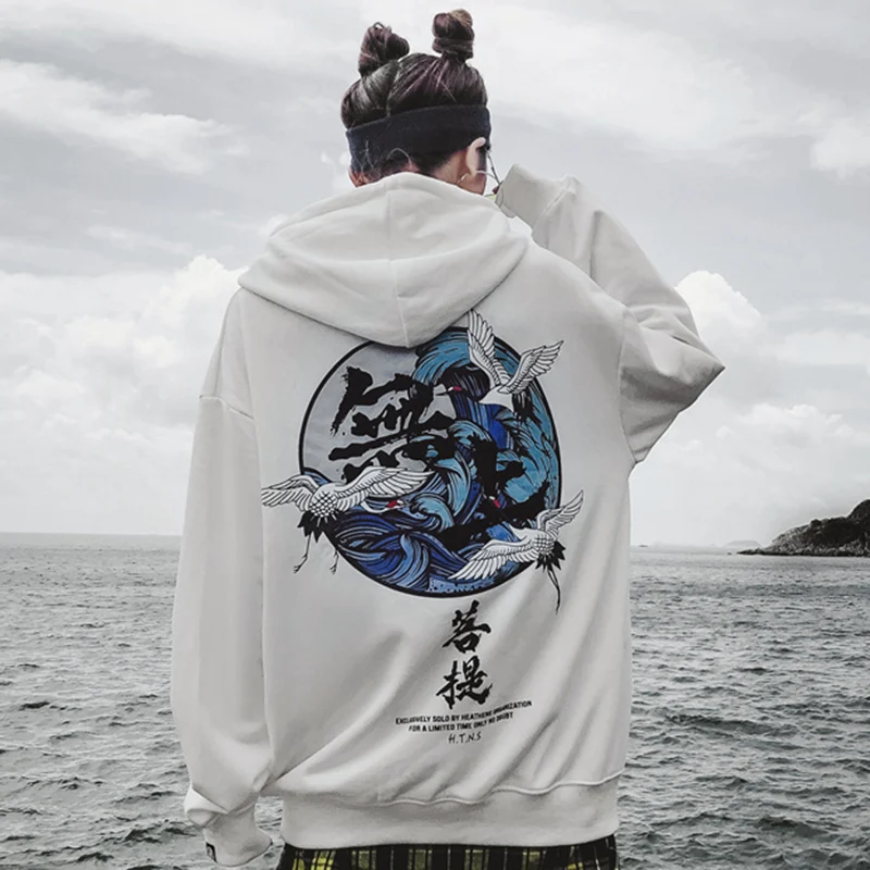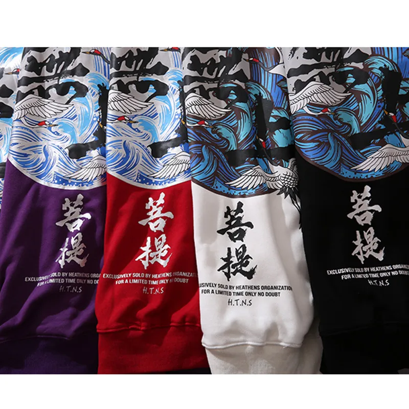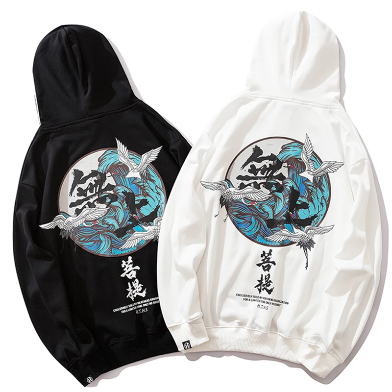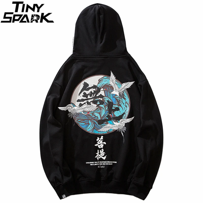 Мужская толстовка в стиле хип-хоп с принтом Будды и журавля, уличная Толстовка Harajuku Kanji, пуловер, черная Осенняя хлопковая толстовка 2020