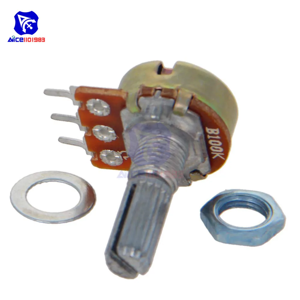 5 шт.лот WH148, 20 мм вал, 3-контактный потенциометр, резистор, аналогиом с гайкой, шайба, линейный конический поворотный потенциометр для Arduino