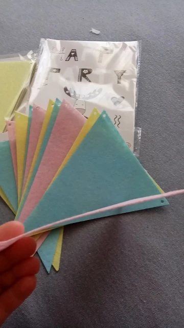 Очень милые флажки, небольшого размера Но меня это не смущает, смотрятся красиво, цвета не яркие, нежные. как раз мне такие нужны Аккуратно сделаны, в упаковке имеется лента и иголка для удобного продевания в отверстия. Вобщем я довольна доставка 2.5 недели.