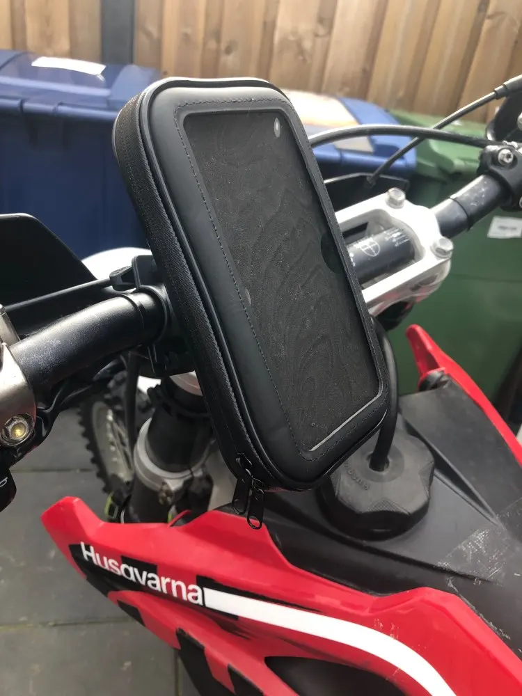 Хорошее крепление к рулю мотоцикла. Чехол Защищает мобильный телефон от дождя, пыли или ненасыщенной погоды, он хорошо обрабатывает, прикоснувшись к прозрачному экрану. Очень рад, что рекомендую. Спасибо.