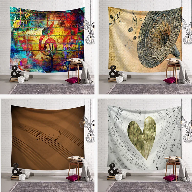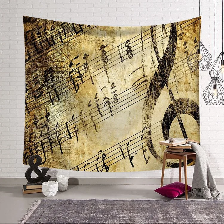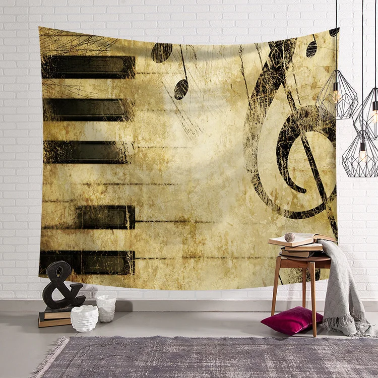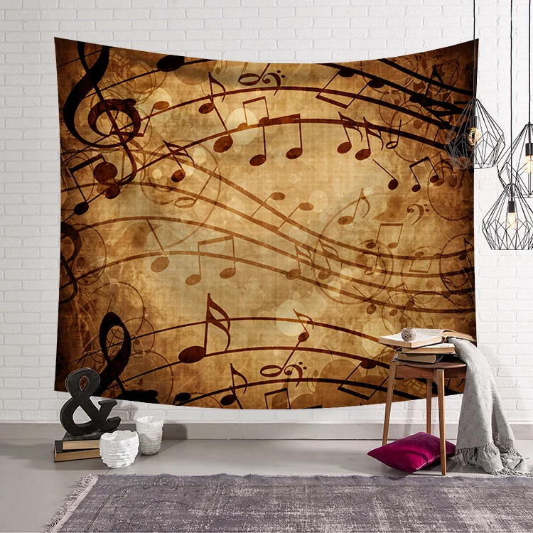 Настенный гобелен с музыкальным принтом музыкальных нот 200x150, большой ретро гобелен, тканевый Декор, одеяло, пляжное полотенце