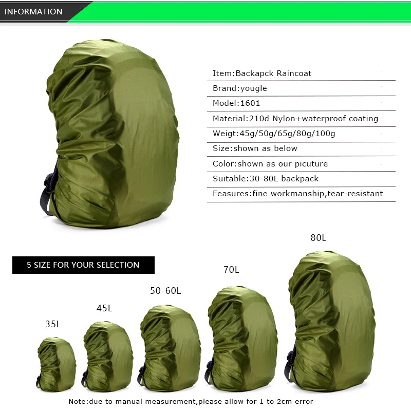 Водонепроницаемый чехол от дождя для рюкзака, 15-65 л, 35-80 л
