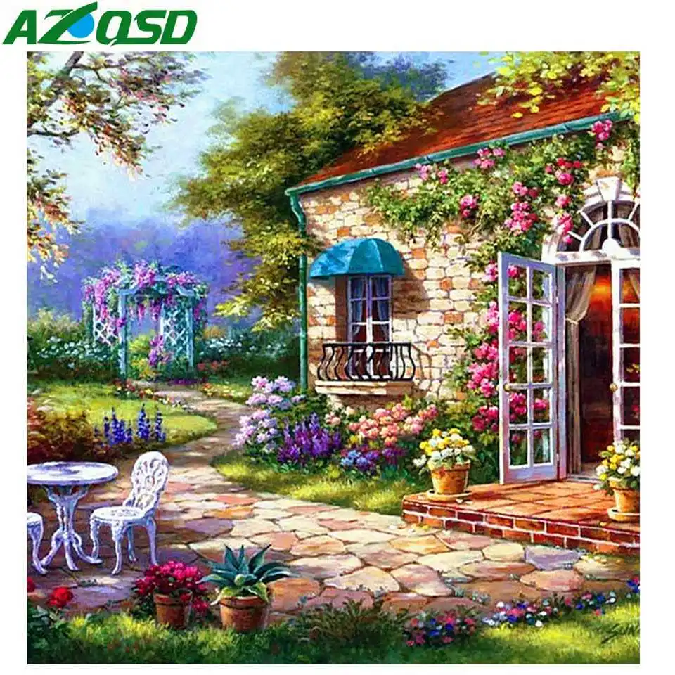 Name:AZQSD Diamond Painting Scenery House Diamond Embroidery Landscape Picture Of Rhinestones Diamond Mosaic Full Layout Home Decor