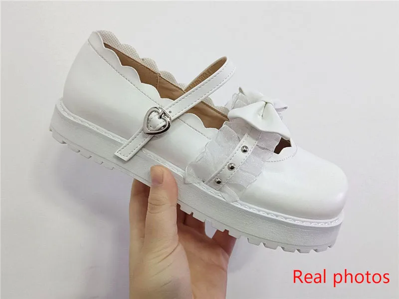 Женские туфли в стиле Лолита, розовые, белые, красные, черные туфли на каблуке в стиле Харадзюку с бантом, Корейская женская обувь с круглым носком