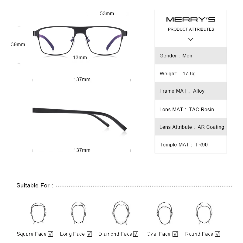 MERRYS Дизайнерские мужские очки из титанового сплава , Мужские ква...