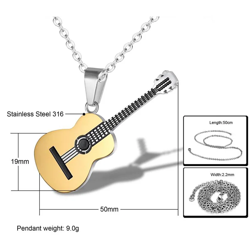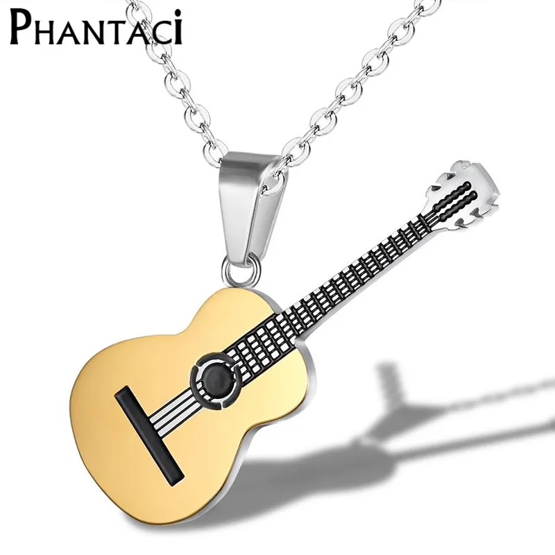 Не выцветает в форме гитары 316L из нержавеющей стали мужские или женские ожерелья бижутерия хип-хоп Рок горка музыка Ele мужские т цепи ожерелье подвеска