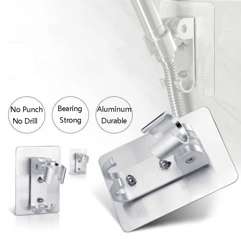 ZhangJi ванная комната алюминиевый держатель для душа с 2 крючками двойная установка само-Adhisive Rustproof Регулируемый без дрели держатель для душа