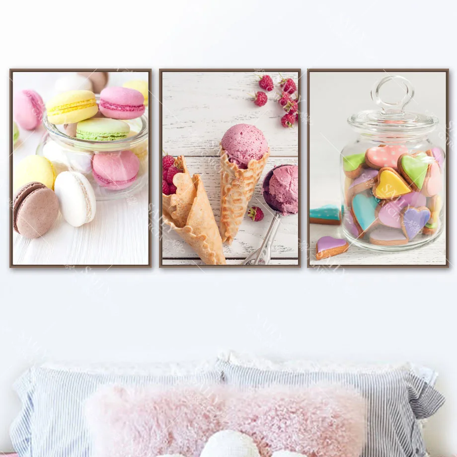 Сладкое мороженое холст искусство живопись современный кухонный постеры декоративные и принты выпечки Кофе Торт продукты настенные картины для детей