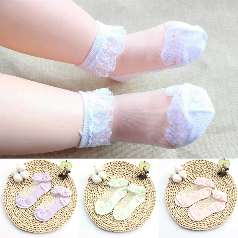 Носки с оборками; Кружевные дышащие хлопковые носки; Носки для маленьких девочек