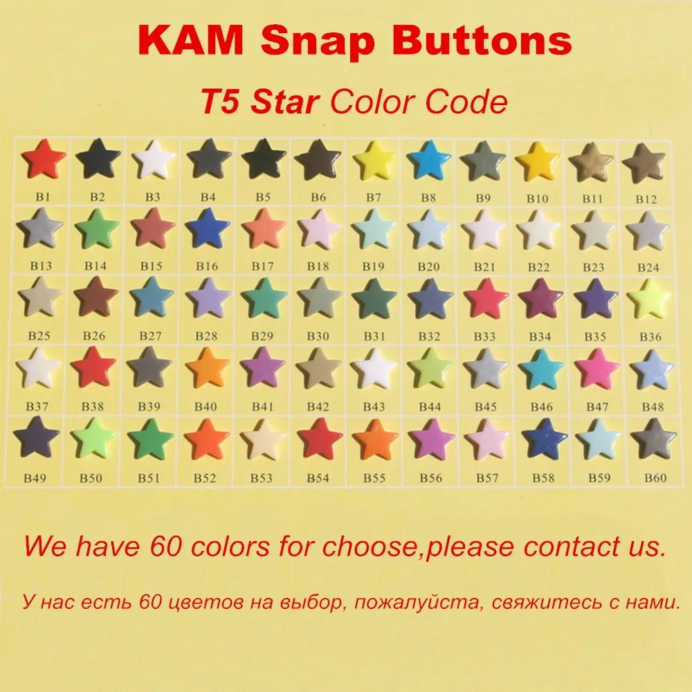Название продукта: кнопки KAM T5 Материал: пластик Размер: T5 Цвет: 15 цветов Количество: 1000 комплектов Форма: звезда Применение: аксессуары для одежды Послепродажное обслуживание: Если у товара есть какие-либо проблемы, просто свяжитесь с нами или оставьте нам сообщение в любое время. Примечание: Из-за разницы в освещении и экране цвет изделия может немного отличаться от изображения. Спасибо за понимание.