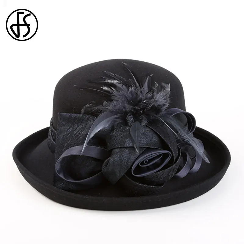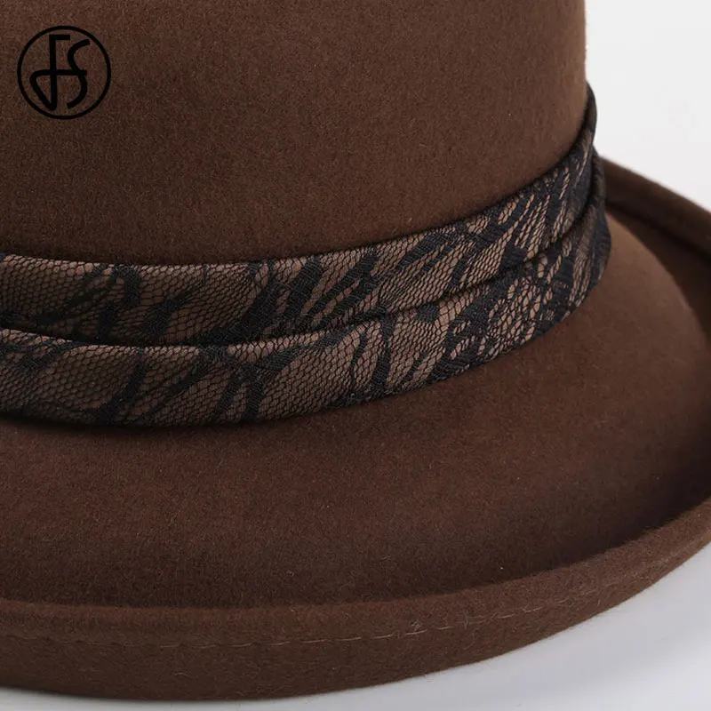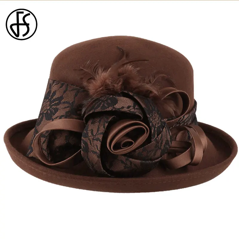 Женская фетровая шляпа-«Колокол» FS, винтажная фетровая шляпа с широкими полями, Красного и коричневого цветов, для зимы, 2019