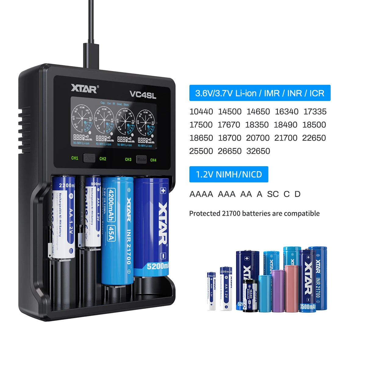 Зарядное устройство XTAR Smart USB C 18650, быстрая зарядка QC3.0, перезаряжаемая литий-ионная батарея 18700 20700 26650 21700 AAA AA, зарядное устройство VC4SL