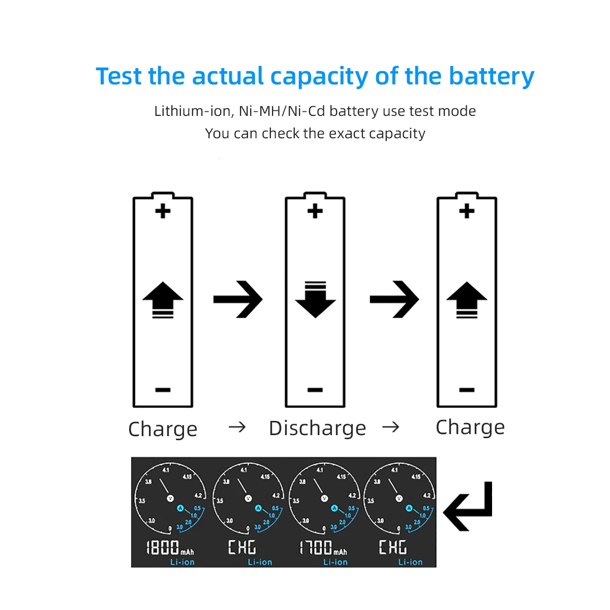 Доставка в Москву 3 недели. Картонная упаковка была смята, но зарядка не пострадала. Зарядил несколько аккумуляторов разных типов, все замечательно. Показывает зарядный ток, сопротивление и емкость, автоматически распознает без ошибок разные аккумуляторы, так что описание верно. Рекомендую.