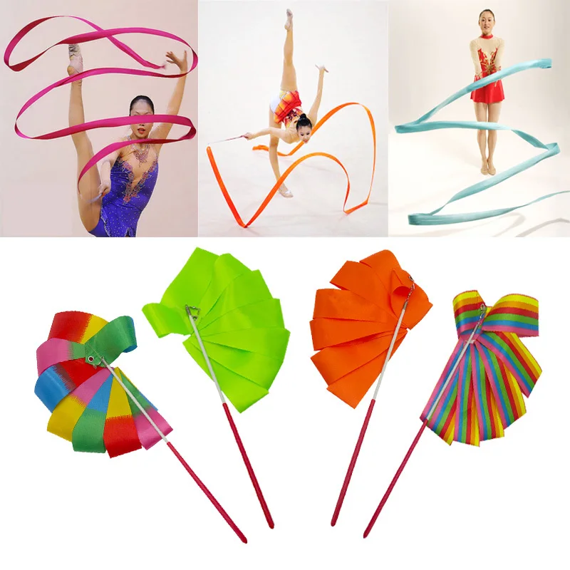 Яркие разноцветные блестящие танцевальные ленты 2 м, танцевальные ленты для тренировок в тренажерном зале, ритмичная лента для профессиональных тренировок в тренажерном зале