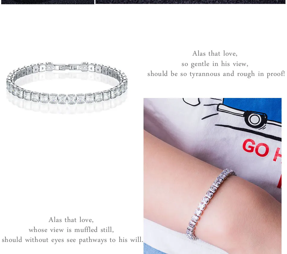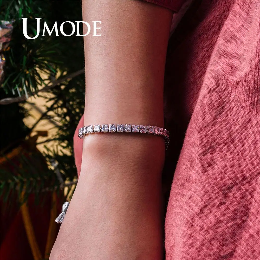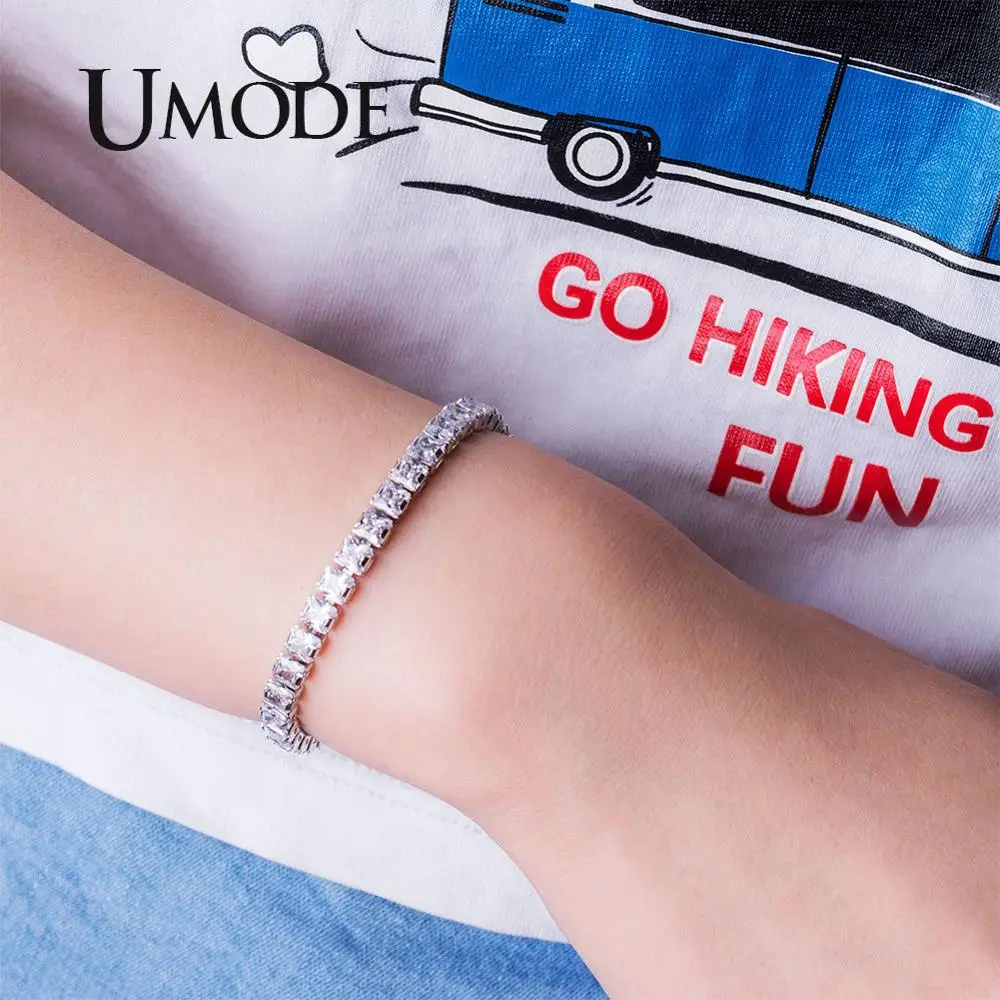 UMODE 0.25ct Прозрачный квадратный кубический цирконий теннисный браслет для мужчин и женщин Свадебные Роскошные ювелирные изделия 0,16 дюймов Женская мода UB0178A