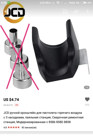Ручка для термофена JCD с 3 насадками, паяльная станция, улучшенная модель 8586 858D 8858