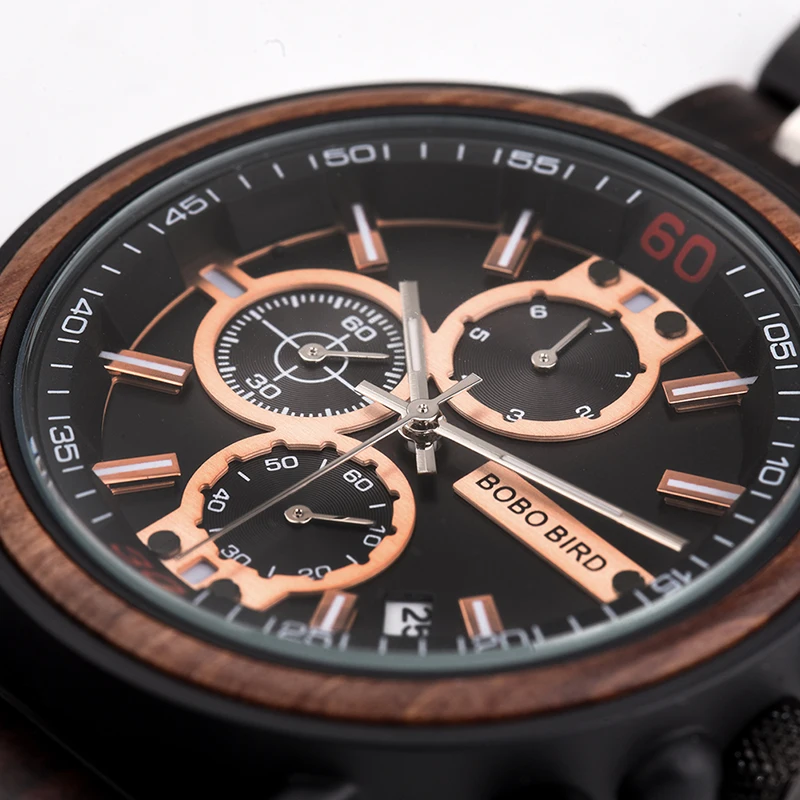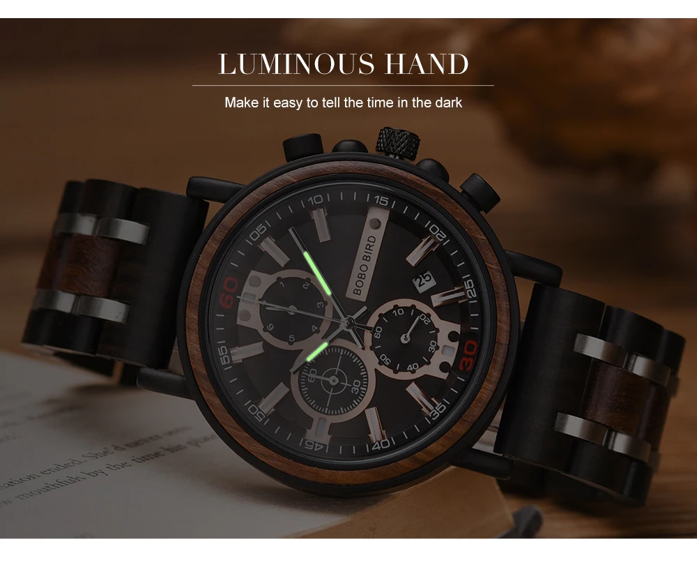 BOBOBIRD деревянные часы, мужские часы с отображением даты, светящи...