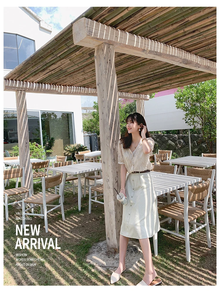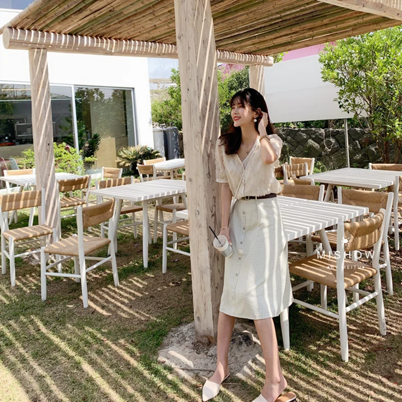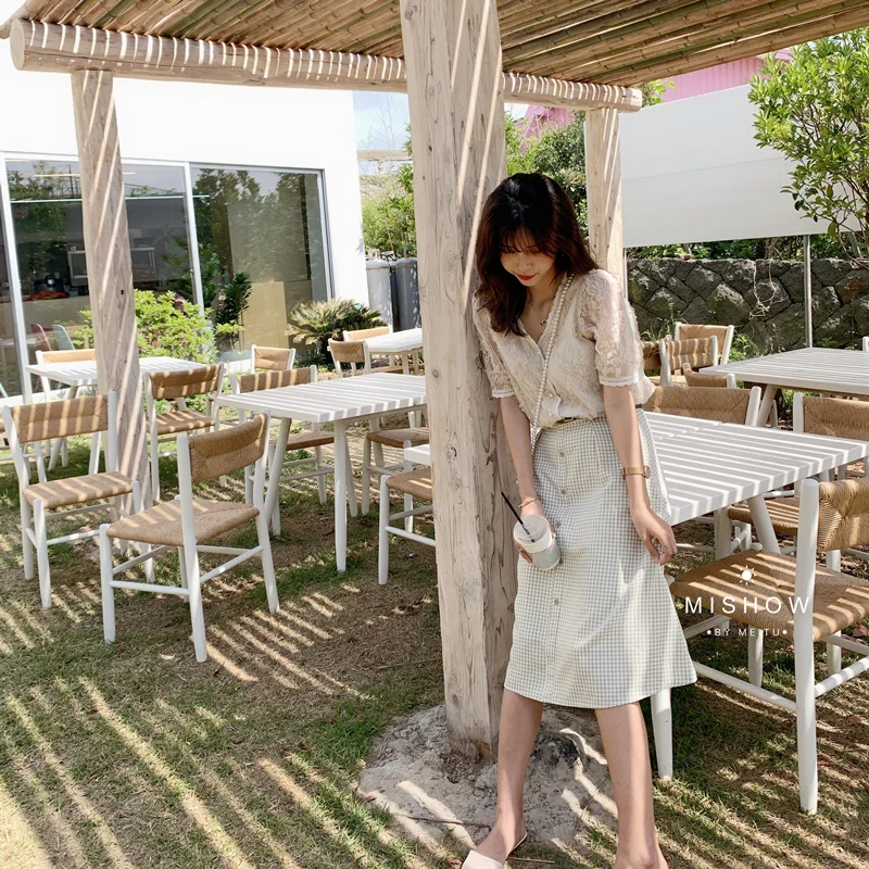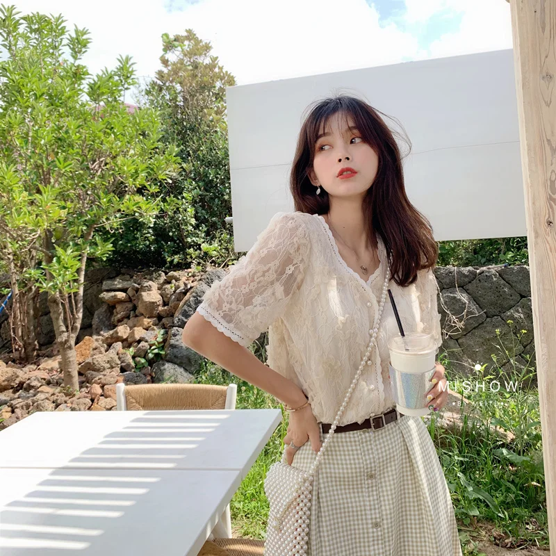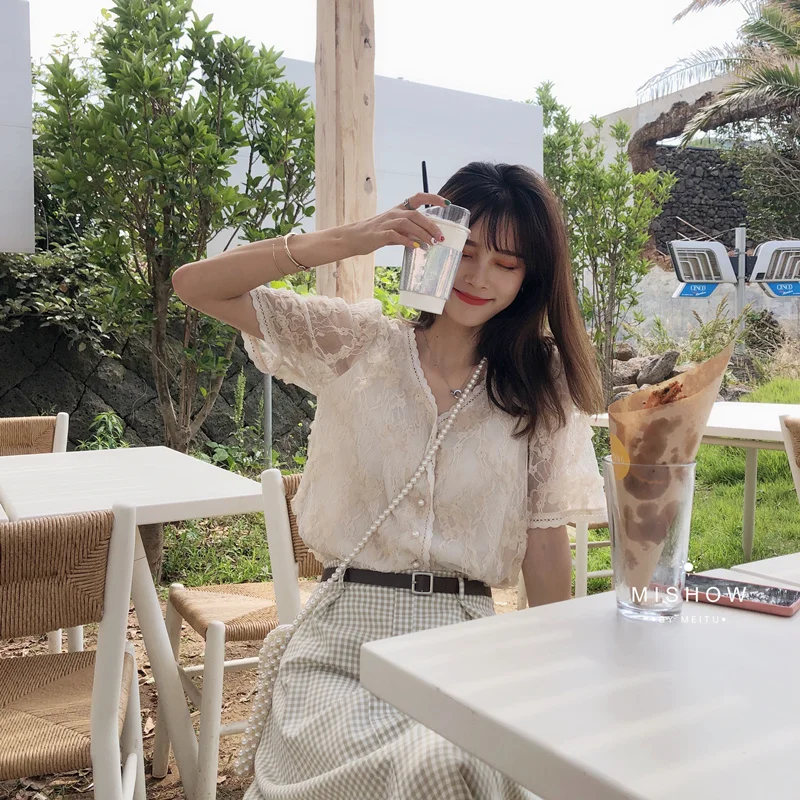 Mishow Летняя легкая тонкая кружевная блузка с V-образным вырезом и коротким рукавом Новая коллекция 2019 Повседневный стиль Материал нейлон MX19B4765