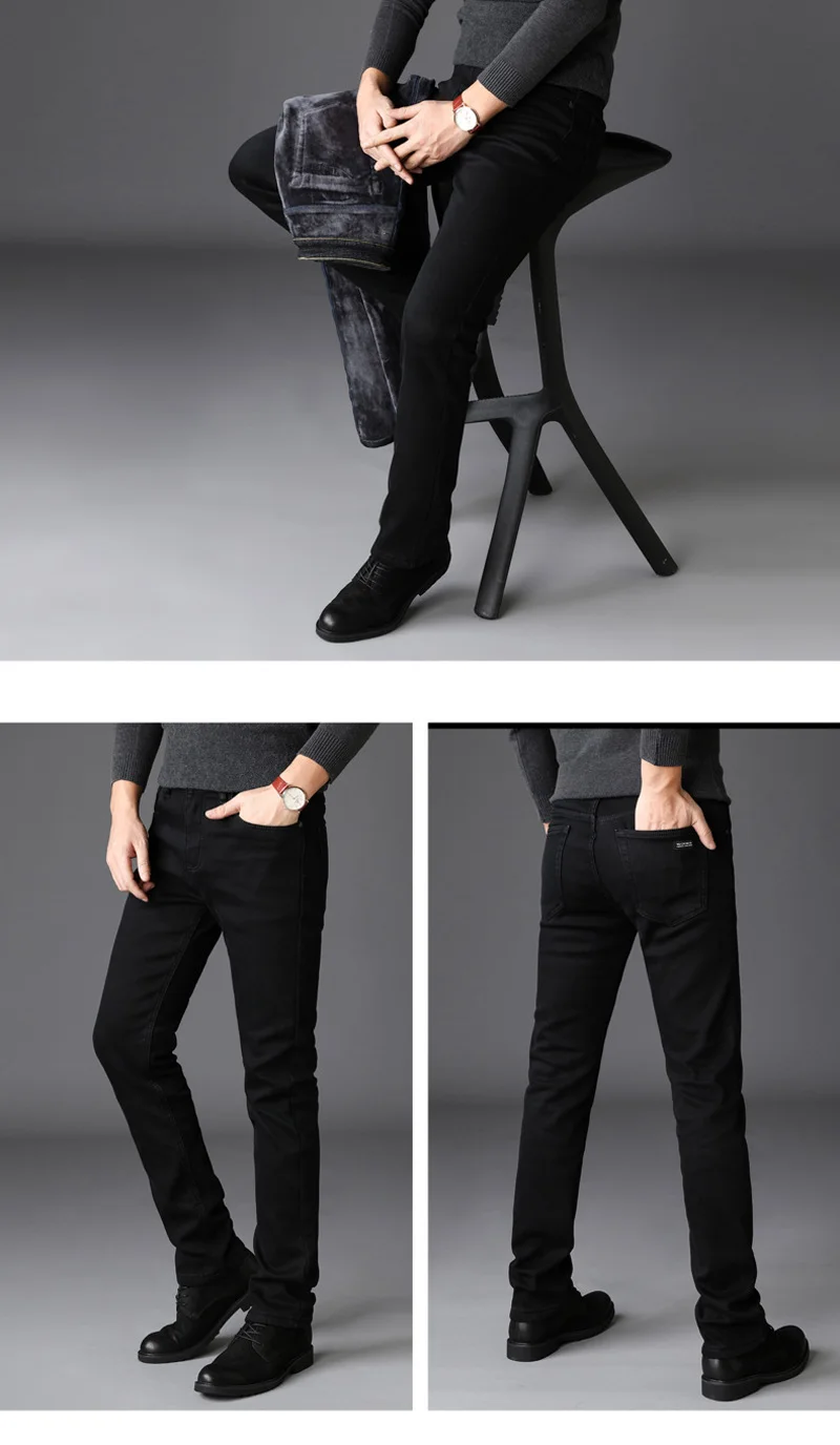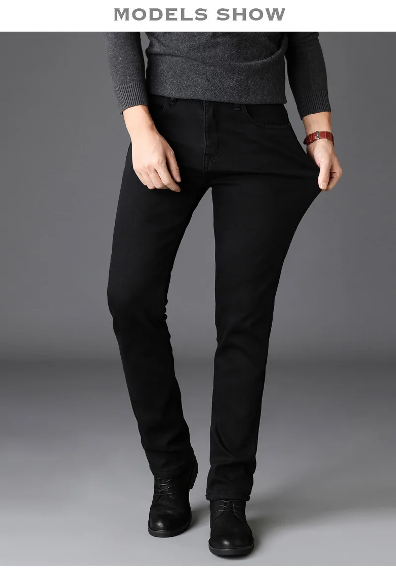 Мужские теплые джинсы, черные эластичные штаны на флисе, деловые джинсы с вельветом, 4 модели, 2021