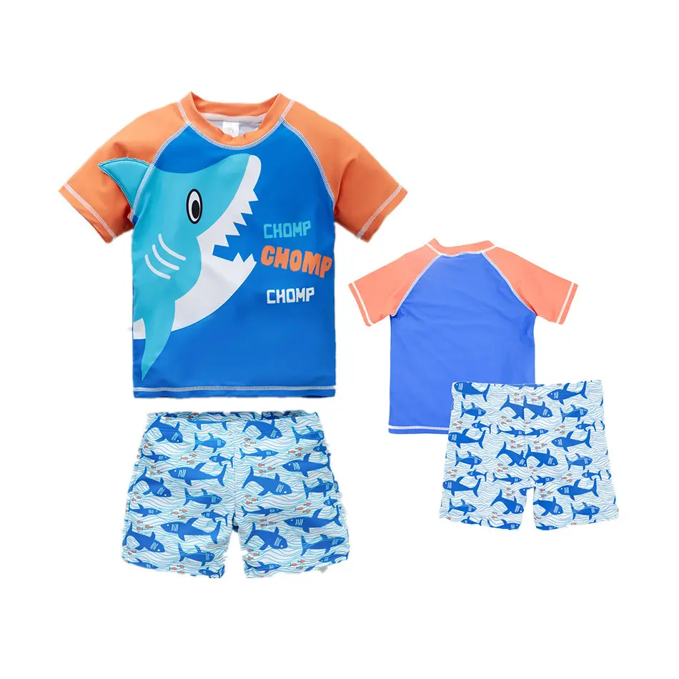 2 шт., детский купальный костюм с принтом рыбы и коротким рукавом
