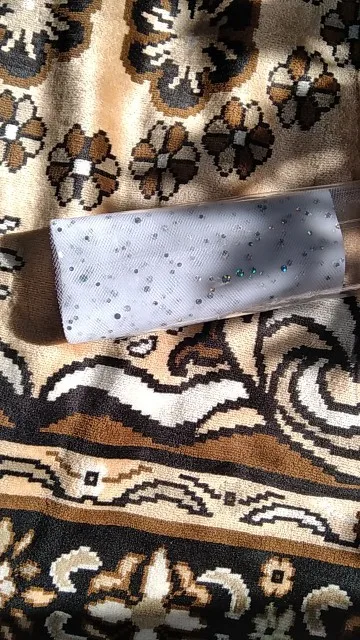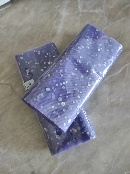 Рекомендую продавца. Доставка месяц до Мск. Мелкая сетка, блестки разного размера.
