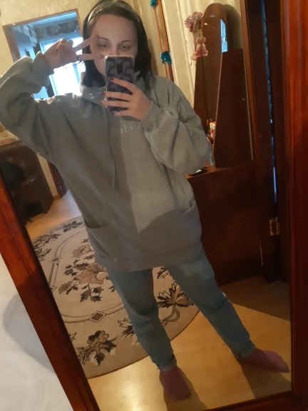 Худи мне прям оооооочень понравилось, ну насчёт качества на 9/10. Во первых в некоторых местах торчат нитки, но это не единственный пока что минус, не стирали. Худи само по себе (ткань) тёплая, карманы думала побольше будут, но а так всё ОТЛИЧНО, я ростом 159 и худая брала Xl получилось прям оверсайз, но если хотите как на картинке покупайте на 2 то ли на 3 размера больше. Доставка долгая до Нижегородской области шло полтора месяца. Если соберацтесь покупать Покупайте!! НЕ пожелейте