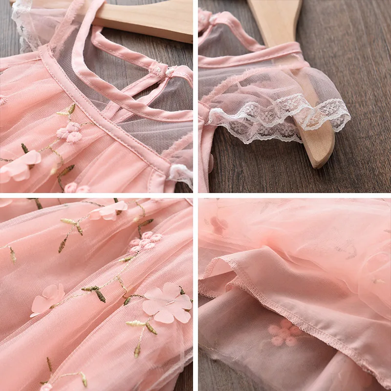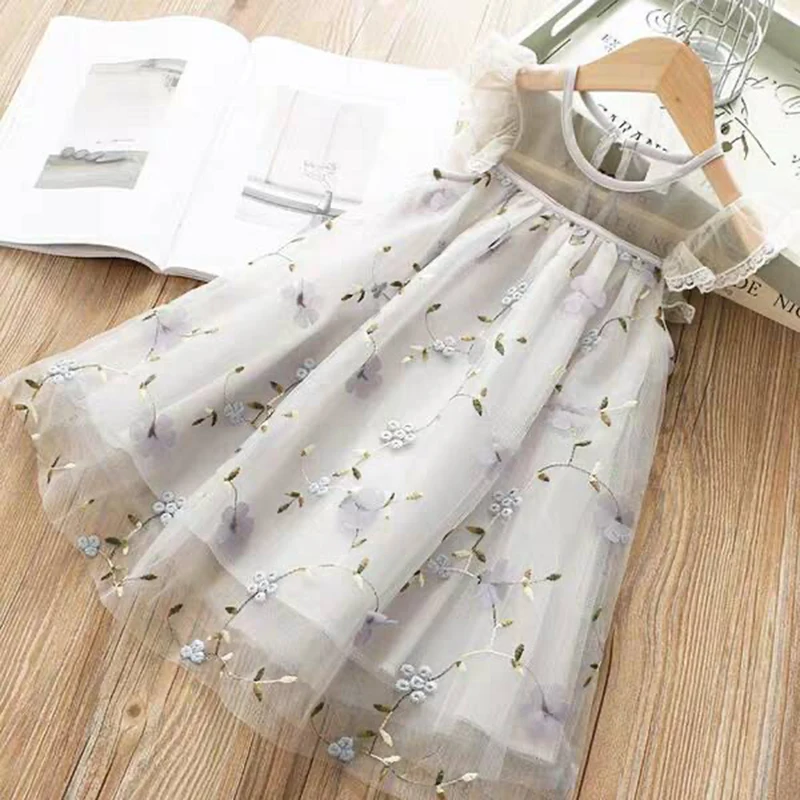 Кружевные вышитые Маленькие платья с цветами для девочек, Летнее Детское платье на день рождения, праздничный костюм, одежда для малышей