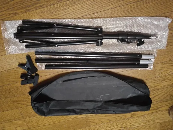 Быстрая доставка, менее чем через неделю. Материал кажется жестким. Сборка быстрая и интуитивно понятная. Основание не кажется очень стабильным, но все еще не было возможности экспериментировать с фоном. Хорошее соотношение цены и качества.