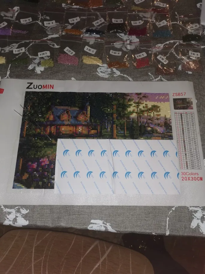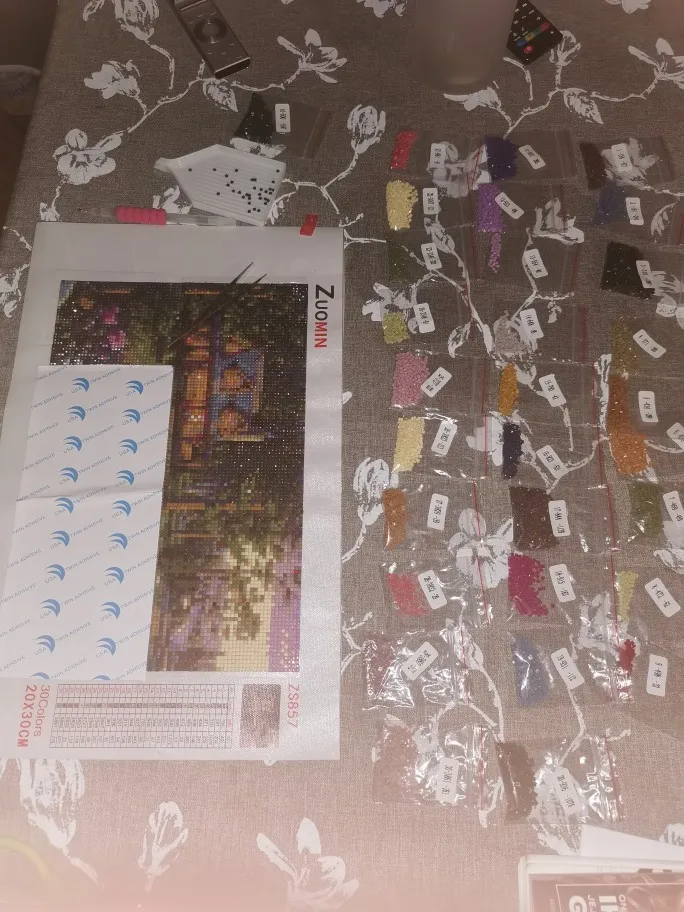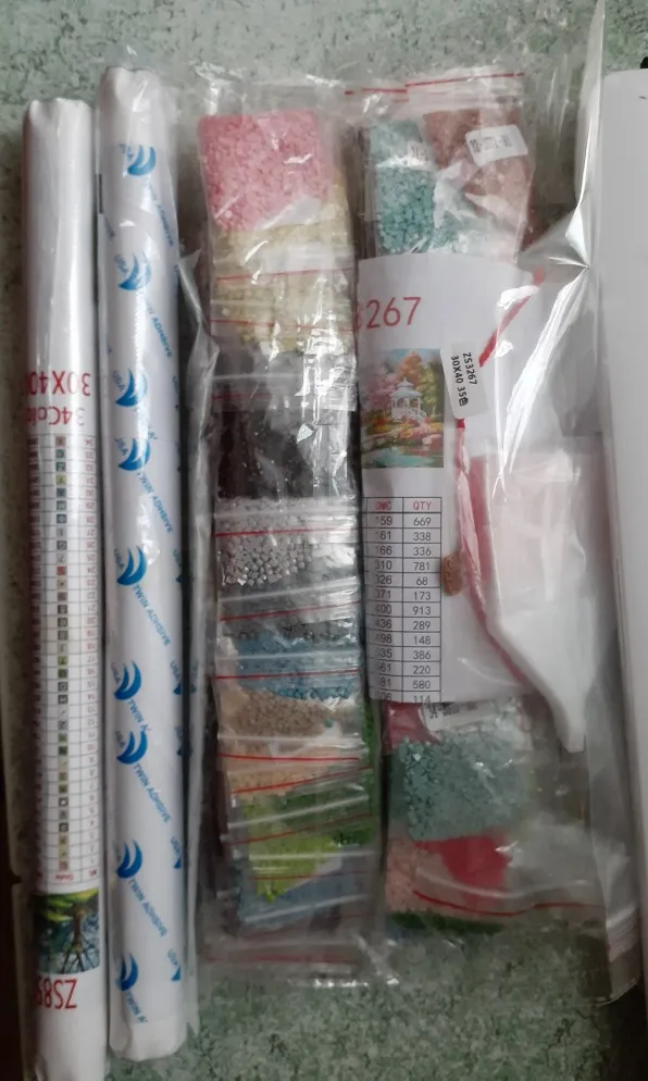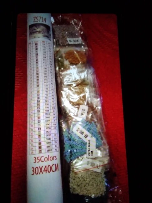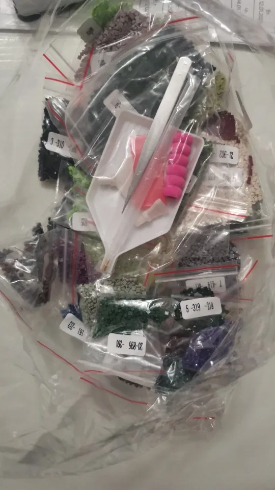 Красиво упакованы. Качество хорошее, холст 30x40 см приятный и липкий, стразы упакованы в закрывающиеся мешки. Стразы имеют 2 различных формы на верхней площади и алмазы. Не уверен, что это стандартная картина, так как это моя первая Бриллиантовая картина