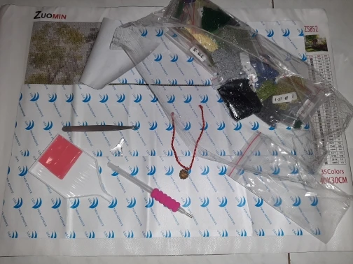 Получила мазаику. Дошла быстро, без повреждений. Аккуратно намотана на валик. Все стразики уже в зип- пакетиках. Чем облегчает работу. В комплекте пинцет, силикон, стилус и лоток. Покупала мазаику себе в подарок на День Рождения, плюс получила в подарок красную веревочку-оберег СПАСИБО БОЛЬШОЕ ПРОДОВЦУ!!!