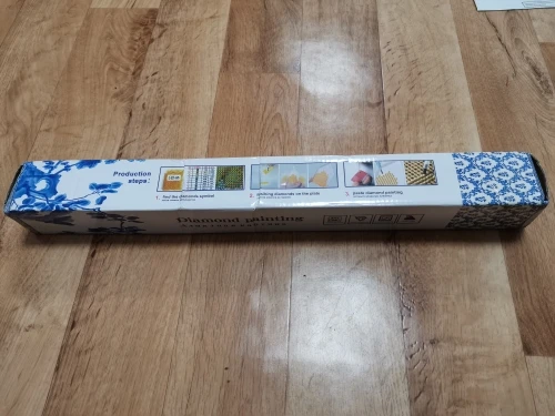 Супер быстрая доставка - 20 дней в Мурманскую область! Коробка была помята немного, но на картину это никак не повлияло. Само полотно очень туго намотано на валик (и это огромный плюс), все стразы в zip пакетах (по количеству и качеству пока ничего сказать не могу), в комплекте лоток, стилус и пинцет. А ещё небольшой презентик от продавца. За что отдельное спасибо, приятно! P.S. Постараюсь дополнить отзыв готовой картиной