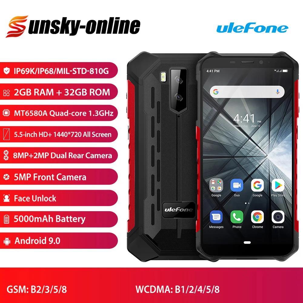 Смартфон Ulefone Armor X3 защищенный, Android 9,0, экран 5,5 дюйма, четырёхъядерный, IP68, 5000 мА ч, 2 Гб + 32 ГБ, мобильный телефон