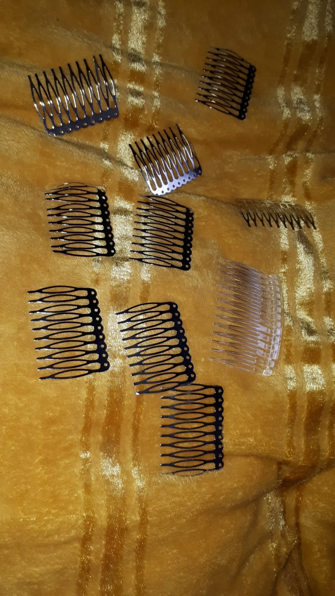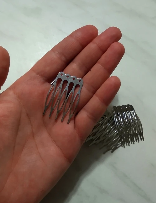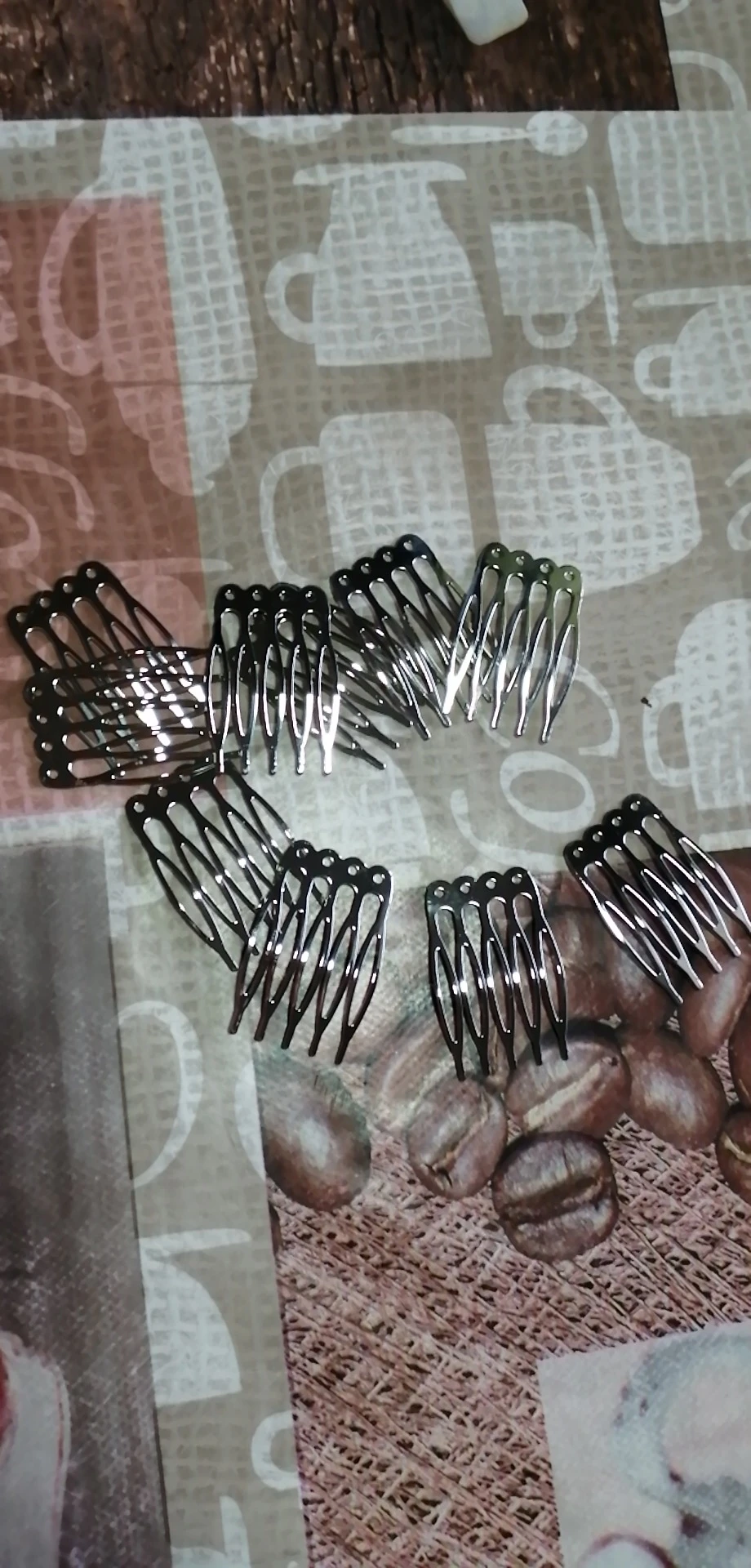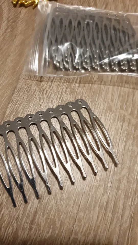 Гребни для волос изготовлены из качественного металла. Они красивые и толстые, поэтому не сгибаются слишком легко. Золотой цвет просто милый! Я надел на них прозрачный лак для ногтей, чтобы они не обесцвечивались! Я уже сделал шпильку! Выглядит очень мило! Спасибо продавцу!