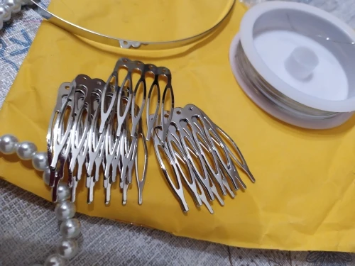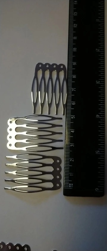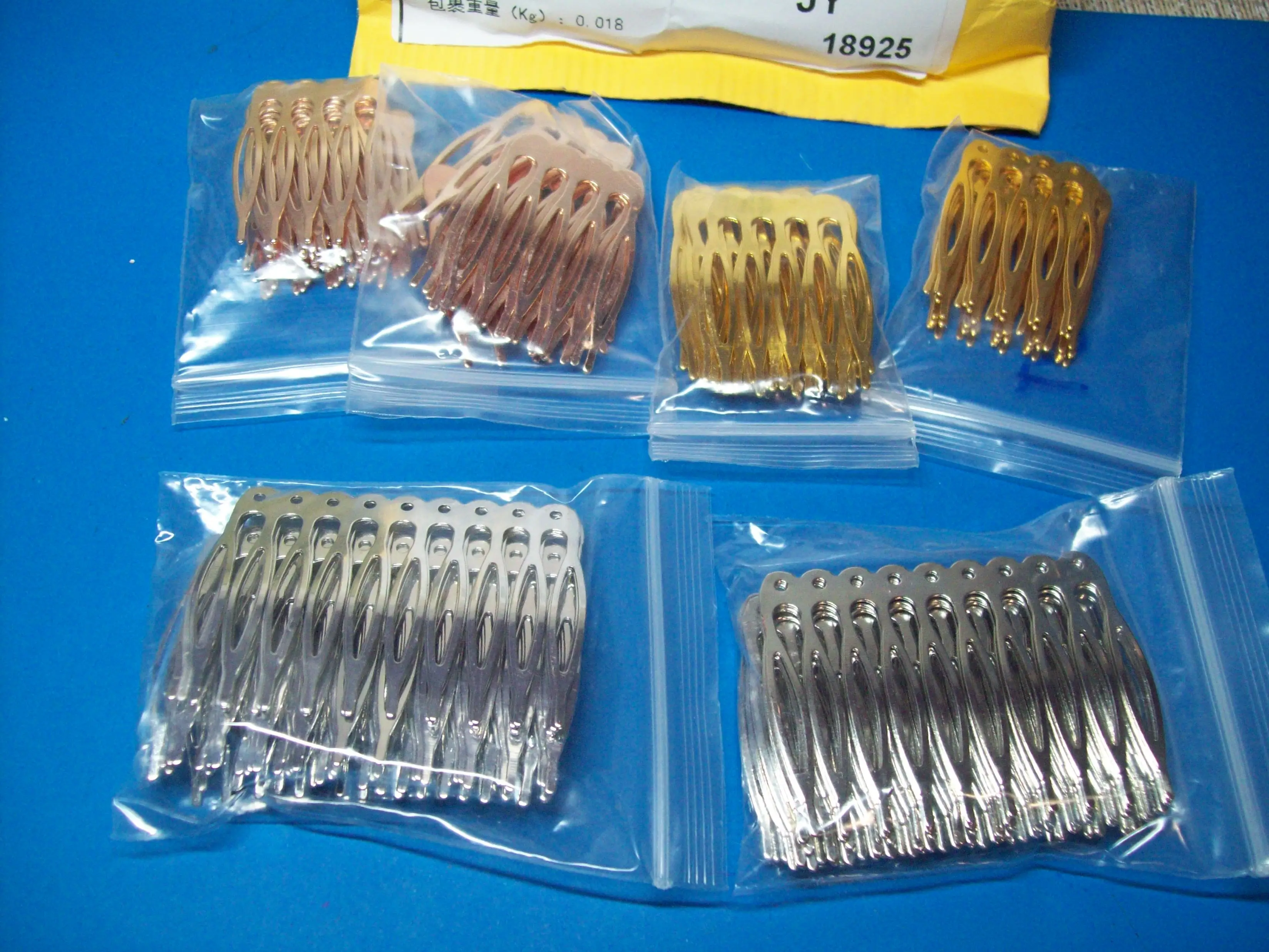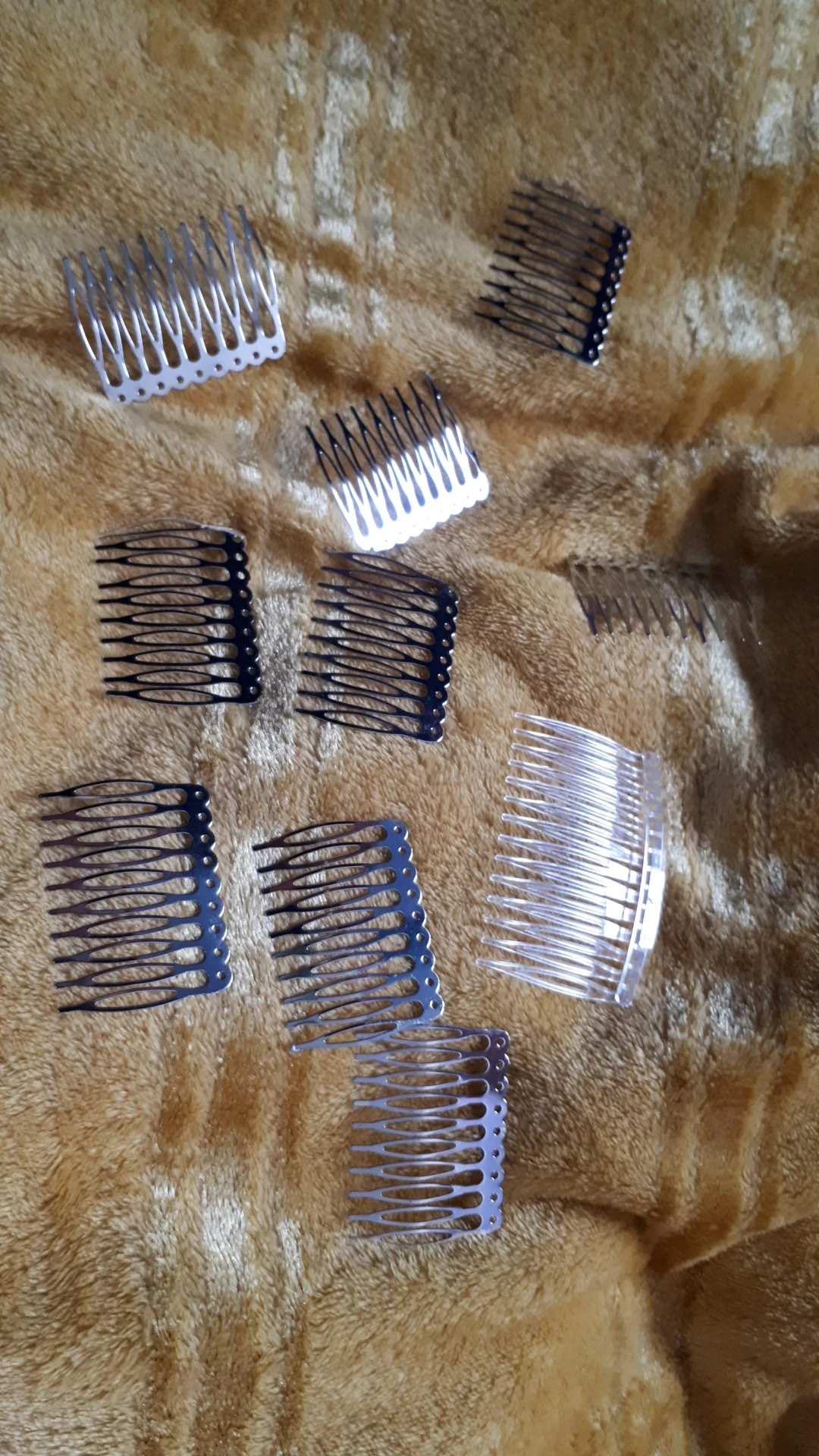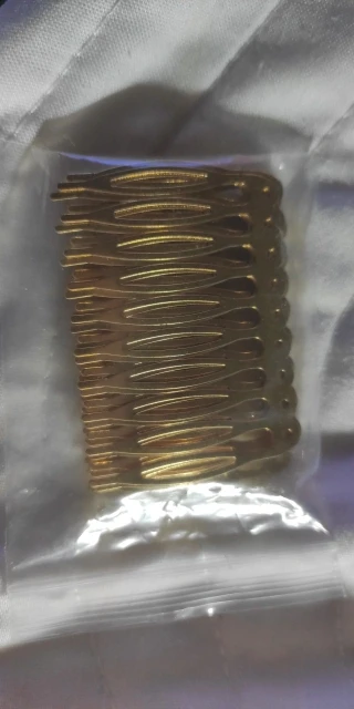 Гребни для волос изготовлены из качественного металла. Они красивые и толстые, поэтому не сгибаются слишком легко. Золотой цвет просто милый! Я надел на них прозрачный лак для ногтей, чтобы они не обесцвечивались! Я уже сделал шпильку! Выглядит очень мило! Спасибо продавцу!