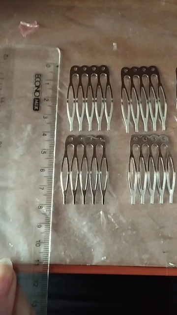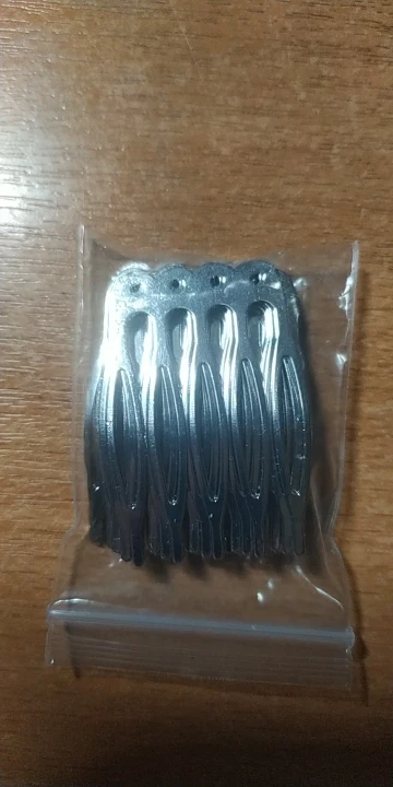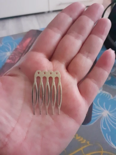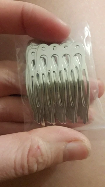 Продавцу бы упаковывать получше. Очень мягкий металл, пришли все мятые. Девять удалось выпрямить кое-как, у десятой зубчик как ни старалась аккуратно исправить, все равно отломился. В целом хорошие гребешки, хорошо держат волосы, без зазубрин. Но если вам удастся их поправить при получении.