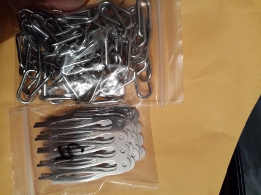 Получила товар очень быстро - за 20 дней , благодаря сгруппированной посылке от нескольких магазинов( что очень удобно и намного быстрее по доставке) . Качество хорошее, есть небольшие заусеницы , количество совпадает. Отличительной особенностью магазина является то, что все гребни рассортированы в отдельные пакетики по 10 штук , а не насыпаны как в некоторых магазинах. За что продавцу огромное спасибо!