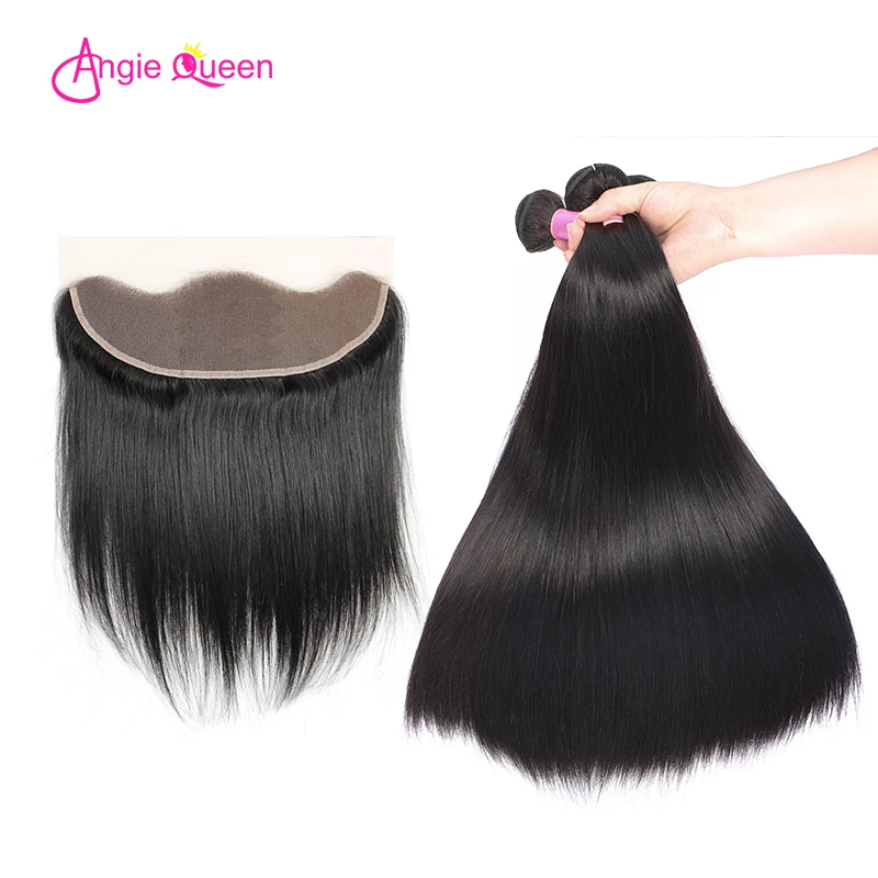 Прямые пучки волос с застежкой ANGIE QUEEN, бразильские волосы есте...
