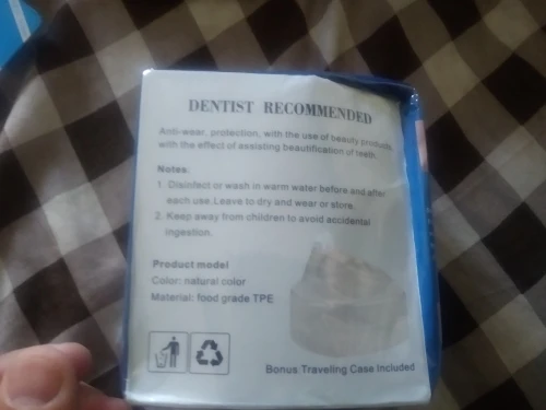 the item didn't work with my teeth. Hard to put in the mouse. Its not fit my mouth. I did braces before so my teeth is pretty much even line. Just this one didn't fit my teeth. I received the item in 2 weeks, fast shipping but items no work.so sad.